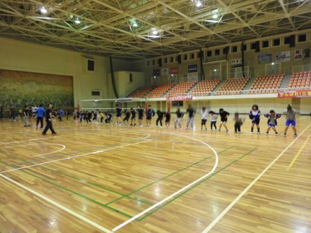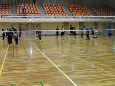 当日は、小さなお子さんから小・中学生の男女 41名の参加があり、はじめてバレーボールに触れる人から、既に小学生バレーや中学校の部活動でバレーボールに親しんでいる人まで、経験に関係なく、みんなが一緒になって、バレーボールを使った様々なゲームを楽しんでいただきました。